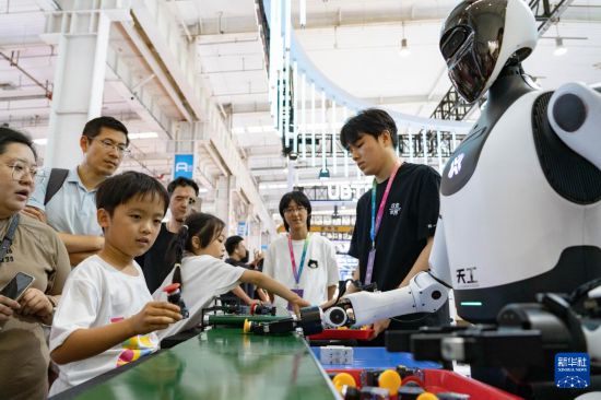 2025世界机械会上展现的一款人机互动的智能机械人(8月8日摄) 。正在位于北京经开区机械世界的全球首个具身智能机械人4S店(ROBOT MALL)内,不雅众正在旁不雅一款人形机械人的互动展现(8月6日摄)。
